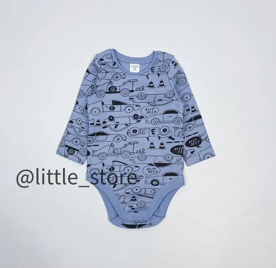 Боди хлопковое "Быстрые машинки" серо-голубое