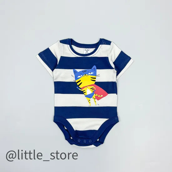 Боди с коротким рукавом выполнено из 100% хлопка-супрем. Мягкий хлопок прекрасно ведет себя в носке, не застирывается и не деформируется во время эксплуатации, безникелевые кнопки не вызовут аллергии и не причинят дискомфорта. Боди застегивается на кнопки на горловине и между ножек для комфортного переодевания