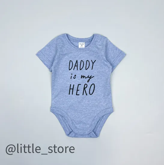 Боди хлопковое "Папа-мой герой" св-голубой меланж