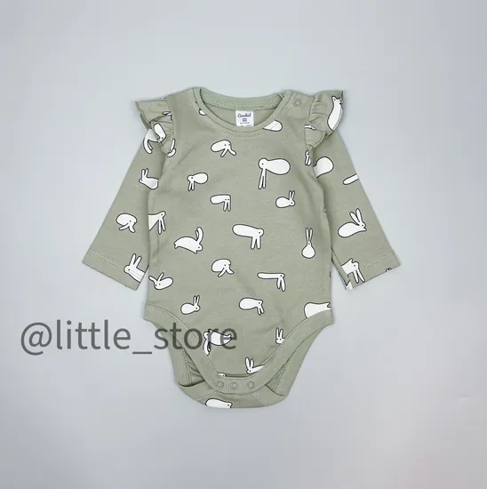 Боди хлопковое "Смешные зайки" темно-оливковое