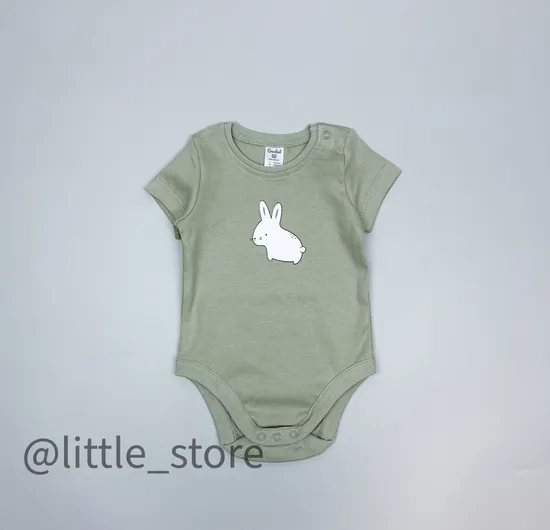 Боди хлопковое "Смешные зайки" темно-оливковый
