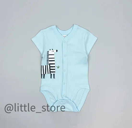 Боди хлопковое "Веселое сафари" голубая вода (короткий рукав)