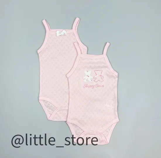 Боди выполнены из 100% мягчайшего ажурного хлопка самого высокого качества. Боди-маечки невероятно удобны в носке, прекрасно подходят в качестве первого слоя под верхний комбинезон, а также в качестве самостоятельной одежды в теплом помещении или в жаркое время года. Ажурная рибана - особо мягкий и нежный материал, изделие из такого материала может показаться достаточно узким, это сделано намеренно, в виду того, что в процессе эксплуатации ажурная ткань садится по форме тела, растягиваясь таким образом. Очень мягкий хлопок приятен нежной коже малыша, прекрасно носится, не деформируется от стирок, сохраняет цвет и форму со временем. В комплекте 2 боди одного размера, размер равен росту ребенка.