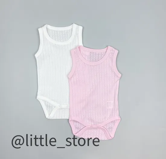 Боди выполнены из 100% мягчайшего ажурного хлопка самого высокого качества. Боди-маечки невероятно удобны в носке, прекрасно подходят в качестве первого слоя под верхний комбинезон, а также в качестве самостоятельной одежды в теплом помещении или в жаркое время года. Ажурная рибана - особо мягкий и нежный материал, изделие из такого материала может показаться достаточно узким, это сделано намеренно, в виду того, что в процессе эксплуатации ажурная ткань садится по форме тела, растягиваясь таким образом. Очень мягкий хлопок приятен нежной коже малыша, прекрасно носится, не деформируется от стирок, сохраняет цвет и форму со временем. В комплекте 2 боди одного размера, размер равен росту ребенка.