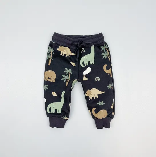 Брюки "Динозавры" из футера с начесом, Графит