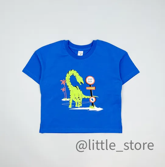 Футболка "Динозавры" хлопковая, Ярко-голубой