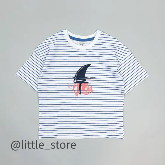 Футболка хлопковая "Акулы" синяя полоска на белом