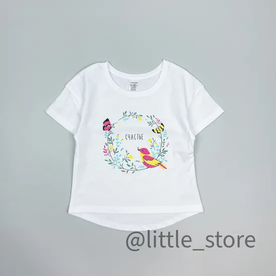 Футболка хлопковая "Бабочки в саду" Белая