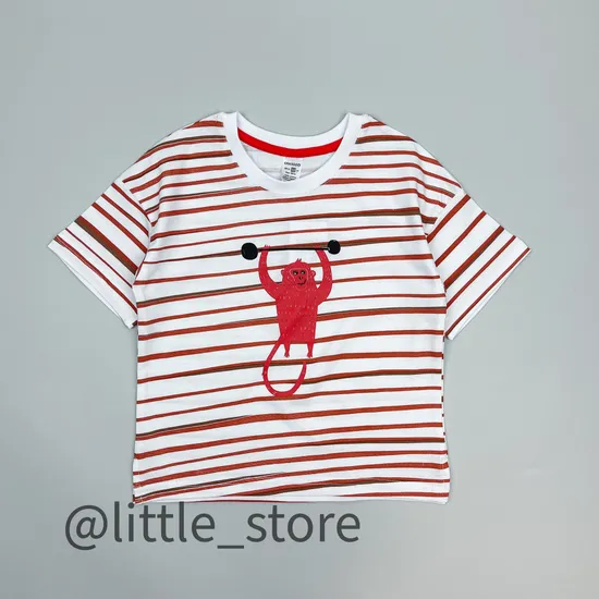 Футболка хлопковая "Обезьяны" белая/полоска
