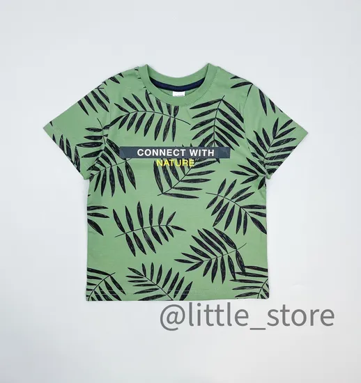 Футболка хлопковая "Сафари" Зеленый камень, листья