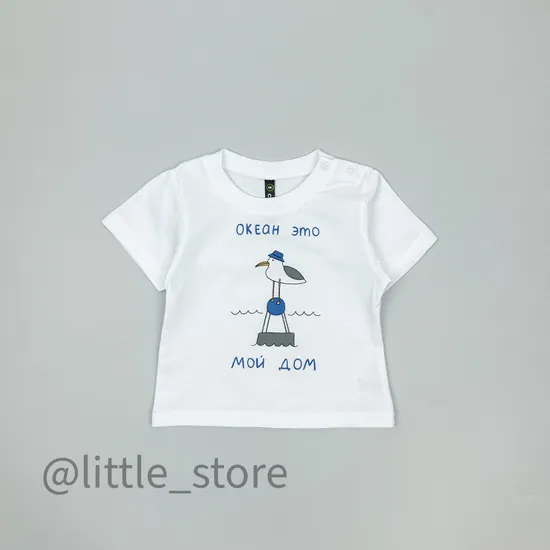 Футболка из мягкого хлопкого трикотажа - супрем, самого высшего сорта Пенье. На горловине предусмотрена застежка на кнопки для удобства переодевания. Изделие сохраняет отличный внешний вид в течение всего срока эксплуатации, не застирывается, не садится и не линяет. Футболка классического кроя, размер равен росту ребенка стандартного телосложения.