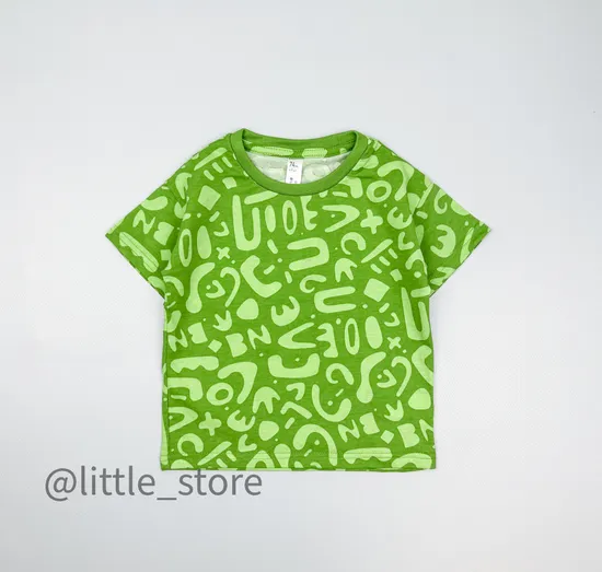 Футболка из мягкого хлопкого трикотажа - супрем. На горловине предусмотрена застежка на кнопки для удобства переодевания. Изделие сохраняет отличный внешний вид в течение всего срока эксплуатации, не застирывается, не садится и не линяет. Футболка свободного кроя со спущенным рукавом, размер равен росту ребенка стандартного телосложения.