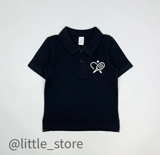 Футболка-поло выполнена из хлопка-пике самого высокого качества. Футболка застегивается на кнопки на груди, украшена принтом с изображением теннисных ракеток. Рукава и низ футболки обработаны плоскими швами. По бокам у футболки разрезы.