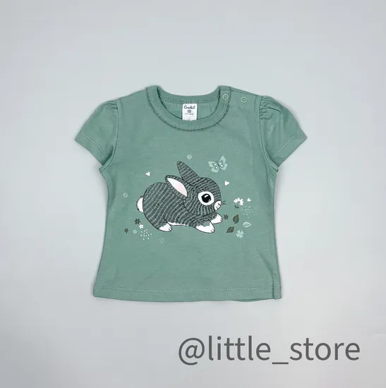 Легкая футболка из нежного трикотажа супрем. Футболка выполнена с короткими втачными рукавами, с принтом на груди. Для удобства одевания на плече футболка застегивается на кнопки.