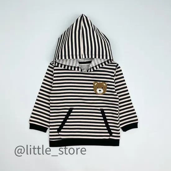 Худи из футера(тонкого) "Медвежонок" черный/бежевый