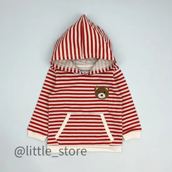 Худи с капюшоном из качественного футера 2нитки с петлей внутри. Удобные манжеты на рукавах и по низу кофты. Широкая эластичная горловина хорошо тянется и не причинит дискомфорта ребенку при переодевании.