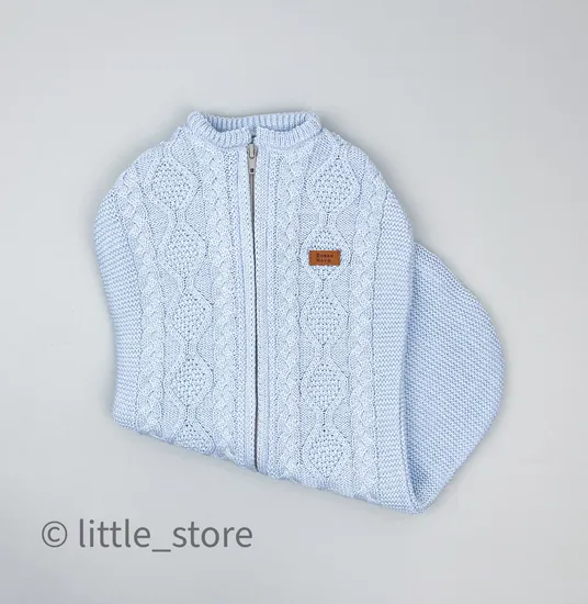 Стильный вязаный пеленальный кокон с мягким хлопковым подкладом внутри, практически невесомый и легкий. Вязаный теплый кокон согреет малыша, а, самое главное, малыш быстрее заснет,не разбудит себя и проспит дольше, - нужно лишь застегнуть молнию. Кокон, как самостоятельная одежда подойдет при температуре от 16 до 22 градусов