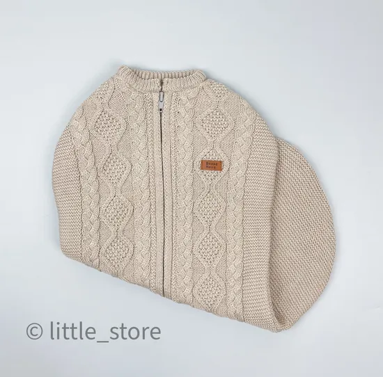 Стильный вязаный пеленальный кокон с мягким хлопковым подкладом внутри, практически невесомый и легкий. Вязаный теплый кокон согреет малыша, а, самое главное, малыш быстрее заснет,не разбудит себя и проспит дольше, - нужно лишь застегнуть молнию. Кокон, как самостоятельная одежда подойдет при температуре от 16 до 22 градусов