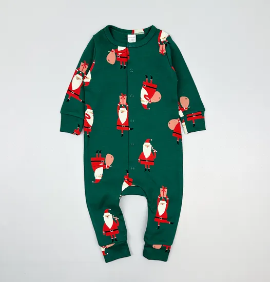 Комбинезон хлопковый "Дед Мороз с подарками" на темно-зеленом