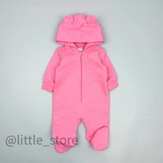Уютный хлопковый комбинезон выполнен из мягкого и плотного хлопкового трикотажа - футер, с петельной основой внутри. Комбинезон с удобным капюшоном, на молнии спереди; во всех размерах рукава на манжетах, ножки закрыты в размера 62/68/74. Размеры 80, 86 и 92 с открытой ногой на манжете.