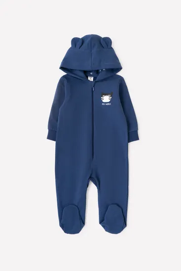 Уютный хлопковый комбинезон выполнен из мягкого и плотного хлопкового трикотажа - футер, с петельной основой внутри. Комбинезон с удобным капюшоном с нежным подкладом внутри, на молнии спереди; во всех размерах рукава на манжетах, ножки закрыты в размера 62/68/74. Размеры 80, 86 и 92 с открытой ногой на манжете.