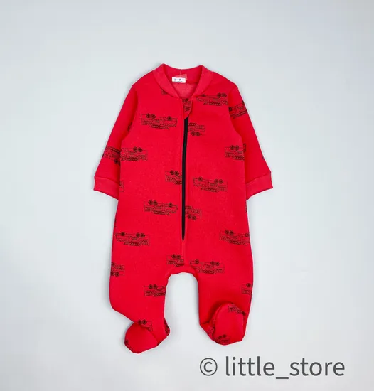 Комбинезон из футера с начесом "Машинки" красный