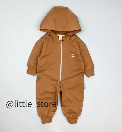 Комбинезон из футера с начесом "One love" Светло-коричневый