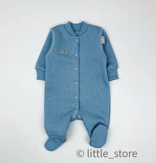 Комбинезон выполнен из плотного 3-ниточного футера с густым начесом. Этот трикотаж отлично сохраняет внешний вид после стирок, термоустойчив, мягок. Воротник и вставки на ножках выполнены из однотонного эластичного материала, который мягко фиксирует манжеты на ногах, благодаря этому комбинезон не будет сползать с ножек малыша, также манжеты прячут излишнюю длину изделия. Комбинезон застегивается по всей длине на кнопки для комфортного переодевания ребенка. Комбинезон идеален в прохладную погоду от 14/16 градусов, а также в качестве поддевы в более холодное время. ВНИМАНИЕ! Материал комбинезона с дополнительным утеплением в виде высокого начеса, предварительная стирка в застегнутом виде даст эффект ворса барашка. Для удаления несформировавшихся завитков обработать сухой или липкой щеткой и прогладить с изнанки. Нашивки на размерах отличаются размером, в размерах 68/74 и 74/80 нашивка бОльшего размера, см последнее фото.