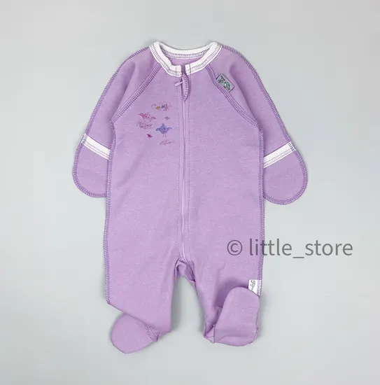 Антицарапки защищают малыша от царапания. Молния по всей длине комбинезона удобна и практична, позволяет легко и быстро переодеть малыша.