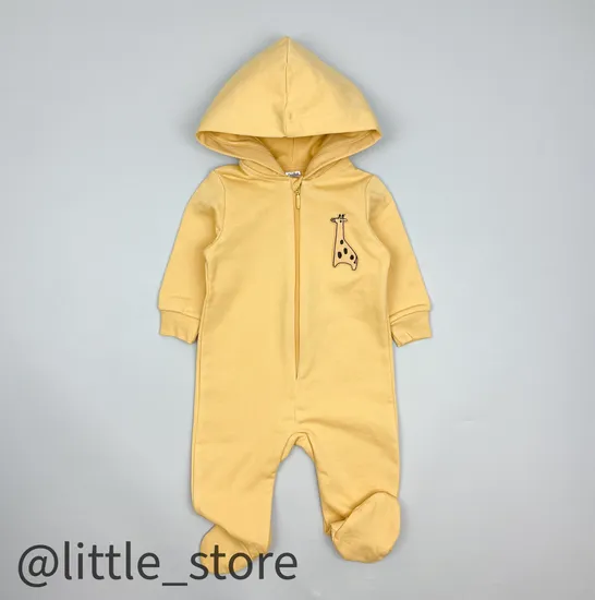 Комбинезон "Веселые жирафы" из футера с начесом, Пшеничный