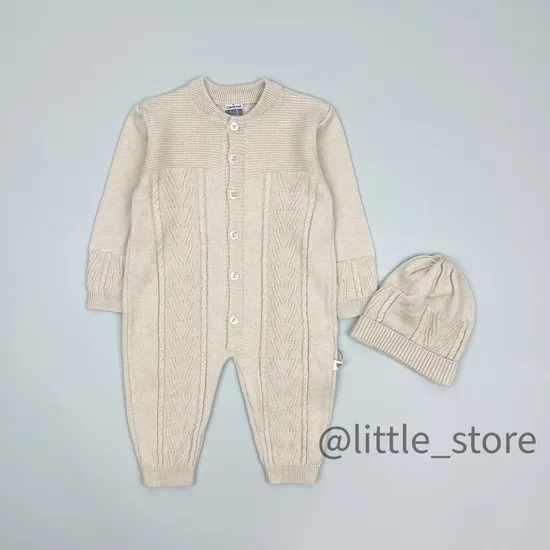 Комбинезон вязаный с шапочкой, Нежный беж