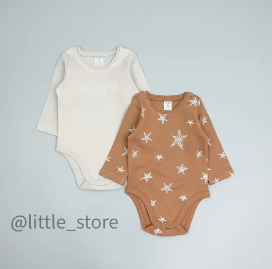 Комплект боди с длинным рукавом, Маленькие звезды/бежевый