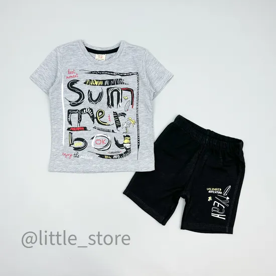 Комплект хлопковый "Summer boy" серый/черный