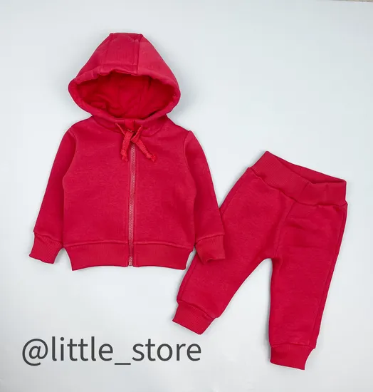 Теплый и удобный комплект выполнен из теплого трехниточного футера качества компакт пенье с густым начесом. Функциональный и продуманный крой костюма обеспечит отличную посадку. Продуманная высокая горловина на толстовке закроет шею ребенка и заменит дополнительный шарф/снуд, при этом не причинит ребенку дискомфорта. Капюшон скроен по форме головы ребенка, со шнурком регулировки по периметру и хлопковым подкладом внутри, - в прохладное время заменит шапочку и защитит от ветра. Толстовка оптимальной, не увеличенной длины отлично сидит на малыше любого телосложения.  Благодаря манжетам по низу штанин, на рукавах и на поясе комплект хорошо сидит на малыше и скрыта излишняя длина, если это необходимо. Высокая посадка штанов идеальна для детей, - это дополнительное место под подгузник и защита от ветра и холода, когда малыш нагибается/находится на ручках. Толстовка оснащена тракторной прочной молнией, с защитой от защемления на горловине. Комплект выполнен аккуратно и эстетично, внутренние швы закрыты в основных местах соприкосновения с кожей ребенка.  Размер комплекта соответствует росту ребенка, 74 размер равен росту 68-74 см и тд. Температурный режим комплекта, как самостоятельной одежды от 12/14 градусов до 18.