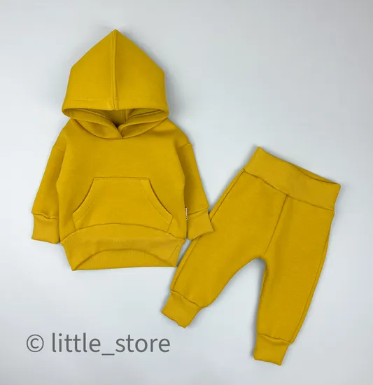 Комплект выполнен из теплого трехниточного футера с густым начесом. Удобный свободный крой костюма обеспечит отличную посадку. Обьемный капюшон защитит малыша от ветра и непогоды и не помешает, если не нужен на голове. Достаточно широкая горловина комфортна при надевании, не вызывает неприятных ощущений. Благодаря манжетам по низу штанин, на рукавах и на поясе комплект хорошо сидит на малыше и скрыта излишняя длина, если это необходимо. Высокая посадка штанов идеальна для детей до двух лет, - это дополнительное место под подгузник и защита от ветра и холода, когда малыш нагибается/находится на ручках. Размер комплекта соответствует росту ребенка, 68 размер равен 62-68 см, 74 размер равен 68-74 см и тд. Температурный режим комплекта, как самостоятельной одежды от 13/15 градусов до 18/20.