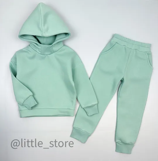 Комплект выполнен из теплого трехниточного футера с густым начесом. Удобный свободный крой костюма обеспечит отличную посадку абсолютно на любое телосложение. Двойной капюшон придет изделию законченный и аккуратный вид; высокая горловина сохранит тепло малыша и не позволит задуть ветру. Достаточно широкая горловина комфортна при надевании, не вызывает неприятных ощущений. Благодаря манжетам по низу штанин, на рукавах и на поясе комплект хорошо сидит на малыше и скрыта излишняя длина, если это необходимо. Высокая посадка штанов идеальна для детей, - это защита от ветра и холода, когда ребенок нагибается/бегает и тд. Температурный режим комплекта, как самостоятельной одежды от 12 градусов до 16/18.
