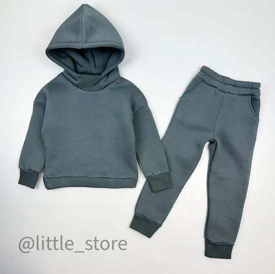 Комплект выполнен из теплого трехниточного футера с густым начесом. Удобный свободный крой костюма обеспечит отличную посадку абсолютно на любое телосложение. Двойной капюшон придет изделию законченный и аккуратный вид; высокая горловина сохранит тепло малыша и не позволит задуть ветру. Достаточно широкая горловина комфортна при надевании, не вызывает неприятных ощущений. Благодаря манжетам по низу штанин, на рукавах и на поясе комплект хорошо сидит на малыше и скрыта излишняя длина, если это необходимо. Высокая посадка штанов идеальна для детей, - это защита от ветра и холода, когда ребенок нагибается/бегает и тд. Температурный режим комплекта, как самостоятельной одежды от 12 градусов до 16/18.