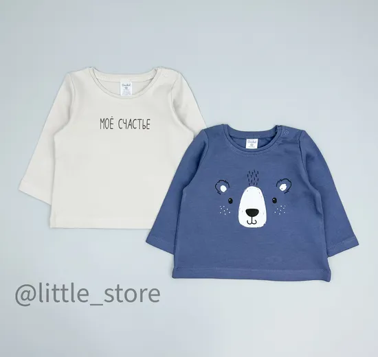 Комплект из двух хлопковых лонгсливов, поставляется в удобной красивой упаковке. Каждый лонгслив с длинным рукавом, выполнен из мягкого хлопкого трикотажа - интерлок. В изделии использован интерлок самого высокого качества пенье, мягкий, эластичный и износостойкий. На горловине предусмотрена застежка на кнопки для удобства переодевания. Размер равен росту ребенка.