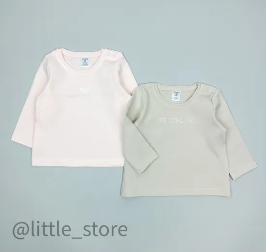 Комплект из двух хлопковых лонгсливов, поставляется в удобной красивой упаковке. Каждый лонгслив с длинным рукавом, выполнен из мягкого хлопкого трикотажа - интерлок. В изделии использован интерлок самого высокого качества пенье, мягкий, эластичный и износостойкий. На горловине предусмотрена застежка на кнопки для удобства переодевания. Размер равен росту ребенка.