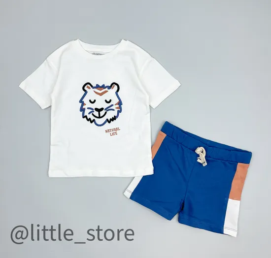 Комплект из футболки и шортиков, выполнен из мягчайшего тонкого дышащего хлопка. Футболка свободного кроя со спущенным плечом и аппликацией спереди. Шортики выполнены из тонкого и плотного футера, такая ткань отлично держит форму и долговечна при эксплуатации. В таком комплекте малышу будет невероятно комфортно в знойную жаркую погоду, комплект не стеснит движений.