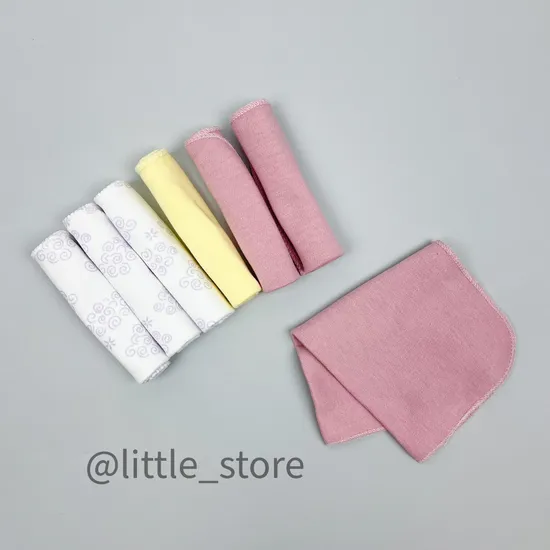 В комплекте 7 платочков, каждый размером 20см х 20см, 100% хлопок
