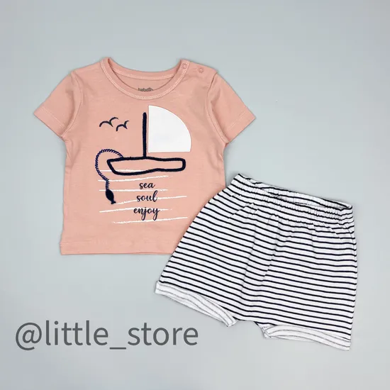 Комплект из футболки и шортиков, выполнен из мягчайшего тонкого дышащего хлопка. Для максимального комфорта футболка застегивается на 2 кнопки на горловине. Шортики выполнены из тонкого и плотного трикотажа, такая ткань отлично держит форму и долговечна при эксплуатации. В таком комплекте малышу будет невероятно комфортно в знойную жаркую погоду, комплект не стеснит движений.