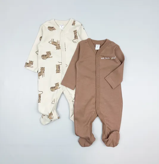 Комплект из двух слипов. Каждый слип выполнен из мягчайшего качественного хлопка-интерлока самого высокого качества, приятного на ощупь. Слип по всей длине застегивается на кнопки, не содержащие никель, ножки закрыты во всех размерах. Размер 56 выполнен швами наружу с антицарапками на ручках.