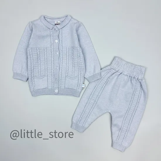 Комплект вязаный, Серо-голубой