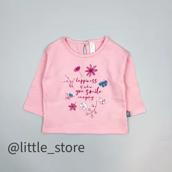 Лонгслив с длинным рукавом из мягкого хлопкого трикотажа. На горловине предусмотрена застежка на кнопку для удобства переодевания. Ткань износостойкая, изделие отлично выглядит весь период эксплуатации.