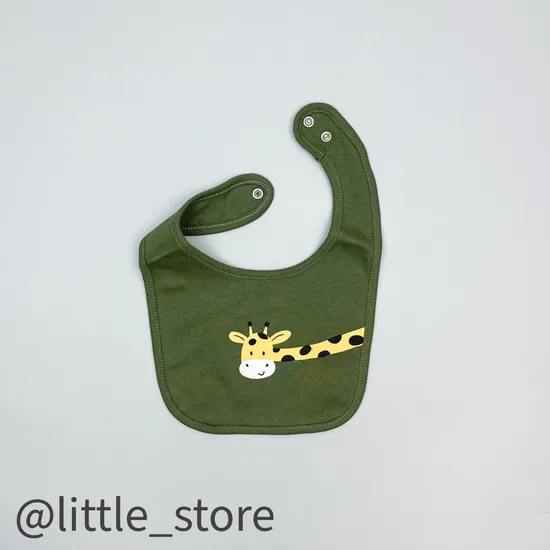 Нагрудник хлопковый "Веселые жирафы" хаки