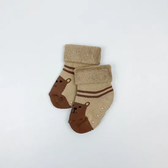 Теплые махровые носочки сохранят ножки малыша в тепле и будут способствовать правильной терморегуляции; отсутствие тугой резинки сверху большой плюс, маленькие ножки не будут передавлены, при этом двойной отворот не даст носочкам сползти. Прорезиненная стопа не даст малышу подскользнуться.
