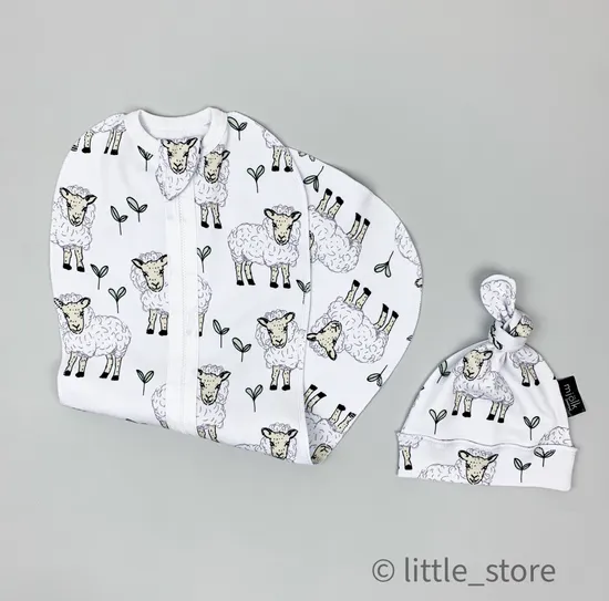 Пеленальный кокон и шапочка Овечки