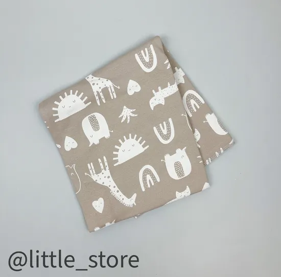Пеленка хлопковая "Любимые зверята" Бежевая