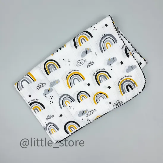 Муслиновая пеленка самого высокого качества, выполнена из турецкого муслина, 100% хлопок. Муслин - натуральный материал, который славится особой мягкостью и прочностью; с каждой стиркой пеленка становится еще мягче. Края пеленки красиво обрамлены цветной каймой. Удобный размер пеленки многофункционален - подходит для пеленания, в качестве простыни, одеялка и тд.Состав: 100% хлопок8